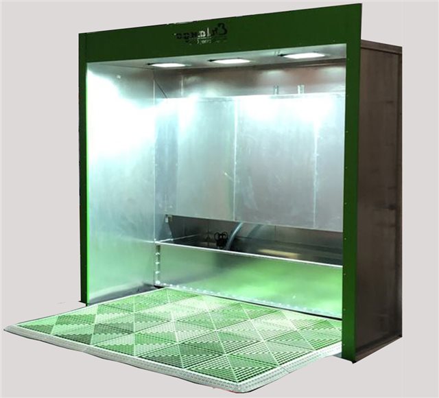 دیواره آبشار آبی با مکش فوقالعاده بالا تمامی گرد و غبار را از سمت اپراتور به طرف دیواره کشانده و محیط را تمیز و عاری از هر گونه ریزگرد میکند و به وسیله جریان آب در سه پرده مختلف فیلتر و تمیز میکند و با پمپ بسیار قوی خود آب را در گردش در میآورد.